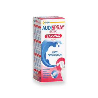 Audispray Ultra is a ground-breaking product for gently treating a wax plug that has formed or is forming in the ear, at home. The Audispray Ultra treatment solution initially separates the wax plug and then dissolves its fragments.