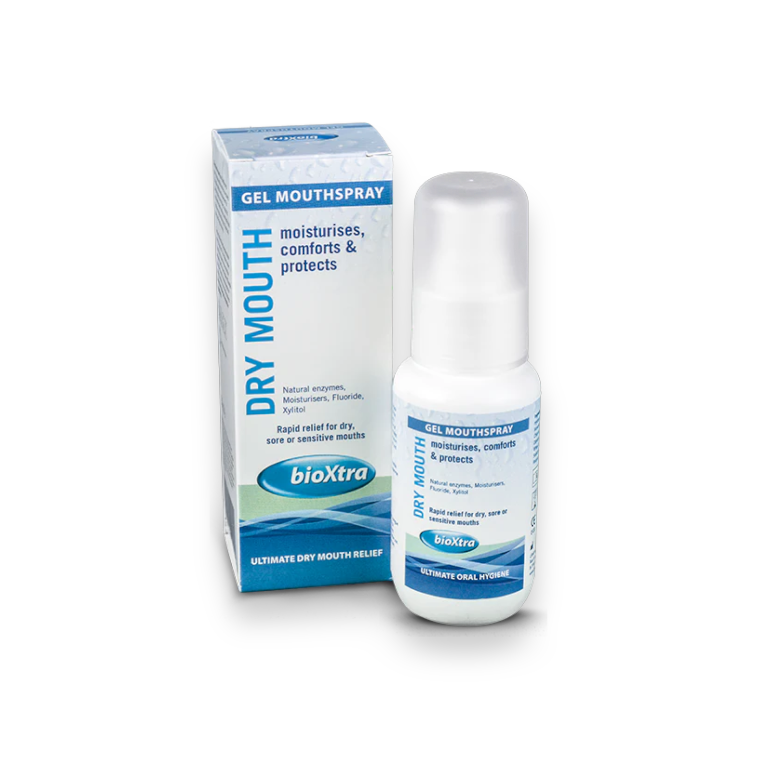 bioXtra Dry Mouth Gel Mouthspray gently supplements natural saliva by regulating the microenvironment of the mouth. The formulation quickly and effectively moisturises, soothes and eases oral discomfort of Dry Mouth (xerostomia). bioXtra Dry Mouth Gel Mouthspray helps strengthen enamel and fight against the formation of dental caries, whilst promoting fresh breath and comfortable gums.