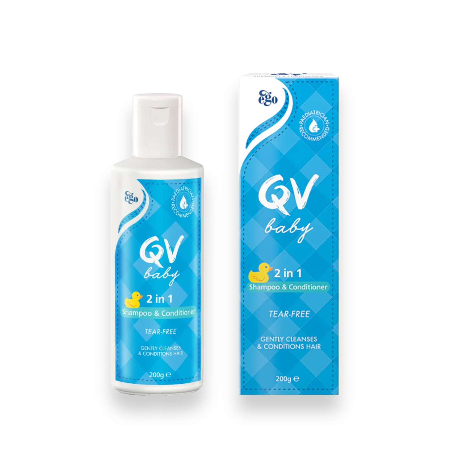 QV Baby 2 in 1 Shampoo & Conditioner is a gentle, dual-action formula designed to cleanse and condition baby’s hair and scalp in one easy step. It simplifies bath time while caring for delicate skin.